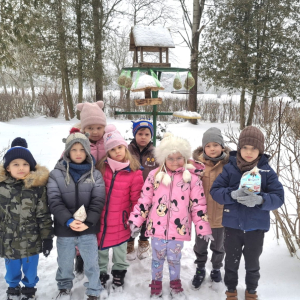 Dziś dzieci z oddziału przedszkolnego wzięły udział w zimowej akcji dokarmiania ptaków. Przedszkolaki z radością wsypywały ziarna do karmników, ucząc się jednocześnie, jak pomagać ptakom w trudnym, zimowym czasie. Po wspólnej pracy na świeżym powietrzu dzieci rozgrzały się, pijąc ciepłą, aromatyczną herbatę. To był miły i pouczający dzień, pełen uśmiechu i troski o przyrodę.