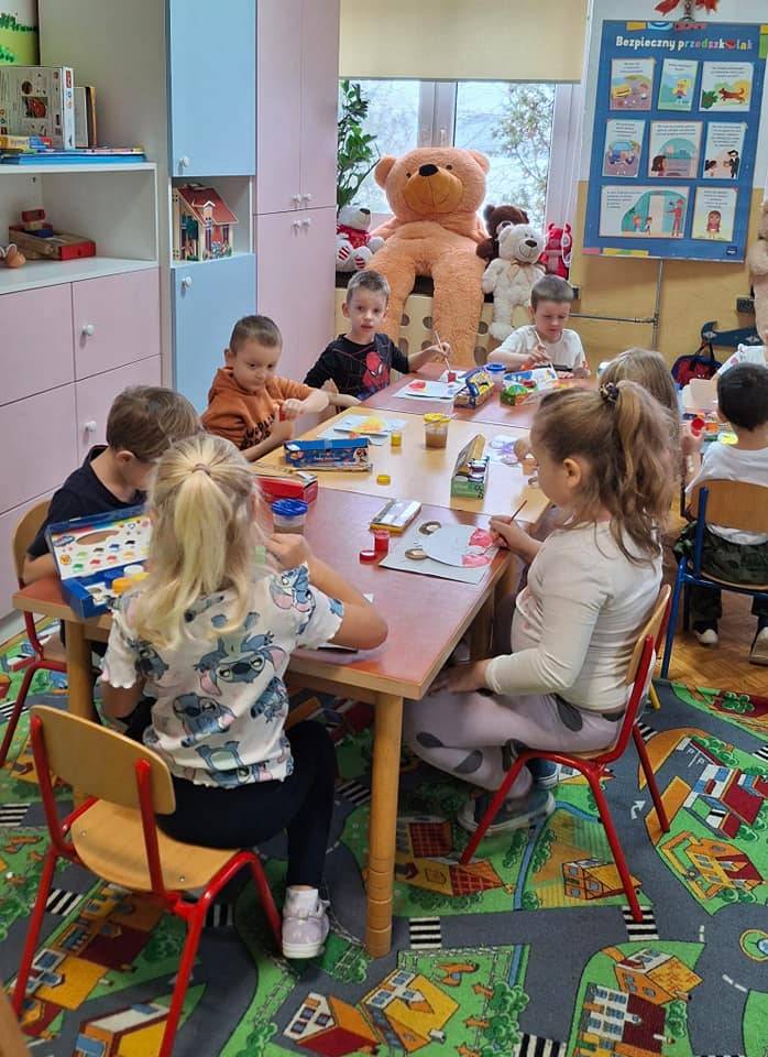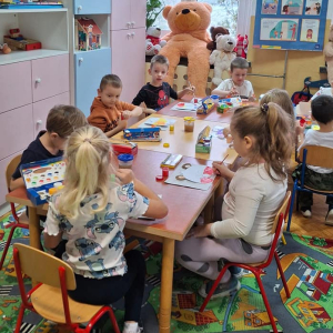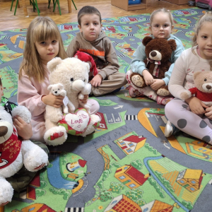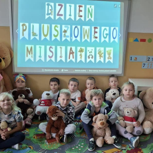 25 listopada w naszym przedszkolu obchodziliśmy wyjątkowe i bardzo lubiane przez dzieci święto – Dzień Pluszowego Misia. Od rana w sali panowała radosna atmosfera, ponieważ każdy przedszkolak przyniósł ze sobą swojego ulubionego pluszowego przyjaciela. Misie małe i duże, nowe i te nieco bardziej wysłużone, zajmowały honorowe miejsca obok swoich właścicieli. Na początku dnia dzieci poznały historię i genezę święta. Dowiedziały się, skąd wziął się pomysł stworzenia pierwszego pluszowego misia. Przedszkolaki z zaciekawieniem słuchały opowieści i chętnie dzieliły się historiami o swoich własnych pluszakach. Podczas zajęć nie zabrakło również muzycznych wrażeń. Dzieci słuchały piosenek o misiach, a niektóre z nich śpiewały wspólnie znane misiowe melodie. Następnie przyszedł czas na ruch. W sali odbyły się tematyczne zabawy ruchowe. Sporą atrakcją było także poznawanie znanych misiowych bohaterów z bajek. Dzieci rozpoznawały postacie takie jak Miś Uszatek, Kubuś Puchatek czy Miś Paddington, a także opowiadały o swoich ulubionych misiowych historiach. Przedszkolaki wykonały również własne maski misia. Podczas pracy plastycznej wykazały się dużą kreatywnością i starannością, dzięki czemu powstała cała kolekcja pięknych, kolorowych masek. Dzień Pluszowego Misia upłynął w radosnej, ciepłej atmosferze. Była to wspaniała okazja do wspólnej zabawy, rozwijania wyobraźni i celebrowania przyjaźni z ukochanymi maskotkami.