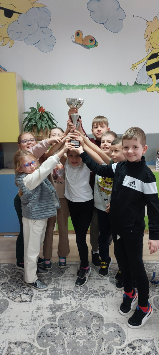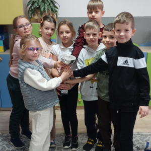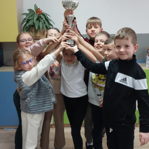 Za swoje wzorowe podejście do oszczędzania oraz imponujący wynik klasa II otrzymała puchar DoSKOnałej Klasy, który teraz dumnie zdobi ich salę lekcyjną. Jest on symbolem ciężkiej pracy, współpracy i odpowiedzialności finansowej uczniów.