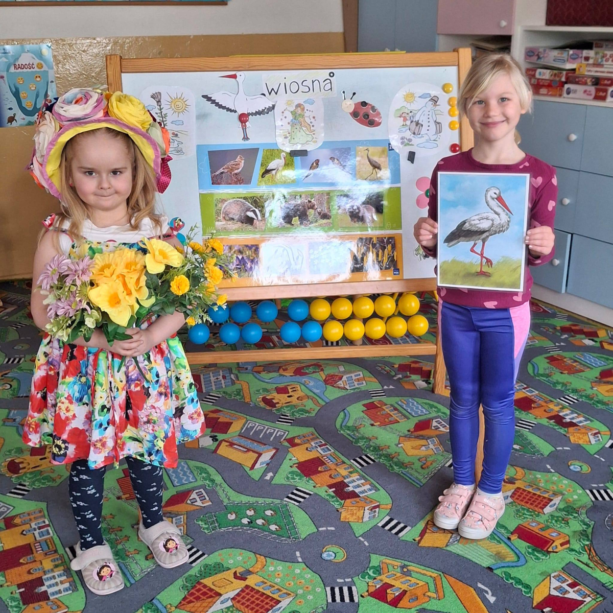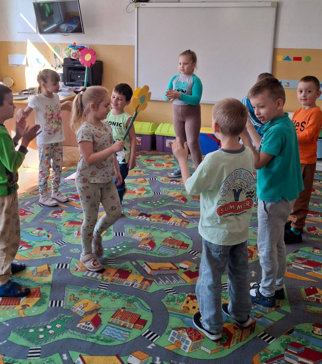 Przedszkolaki brały udział w tematycznych zabawach muzyczno-ruchowych, które dostarczyły im wiele radości i pozwoliły rozładować energię po zimowych miesiącach. W rytm wiosennych melodii dzieci tańczyły, śpiewały i naśladowały odgłosy budzącej się do życia przyrody. Nie zabrakło również zajęć plastycznych, rozwijających kreatywność i zdolności manualne. W trakcie zajęć przedszkolaki rozwiązywały zagadki o tematyce wiosennej oraz wykonywały zadania matematyczne, doskonaląc umiejętność liczenia i logicznego myślenia. Dzieci słuchały wiosennych piosenek, a także uczyły się nowej – o bocianie, który jest jednym z najbardziej charakterystycznych zwiastunów tej pory roku. Dużym zainteresowaniem cieszyło się również rozpoznawanie wiosennych kwiatów – dzieci bez trudu wskazywały m.in. przebiśniegi, krokusy i tulipany. Na zakończenie dnia przedszkolaki wybrały się na spacer w poszukiwaniu pierwszych oznak wiosny. Z radością obserwowały budzącą się do życia przyrodę, wypatrując zielonych pąków na drzewach, pierwszych kwiatów oraz śpiewających ptaków.